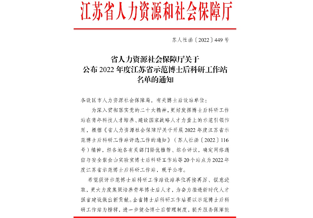 关于公布 2022 年度广东省示范博士后科研工作站名单的通知