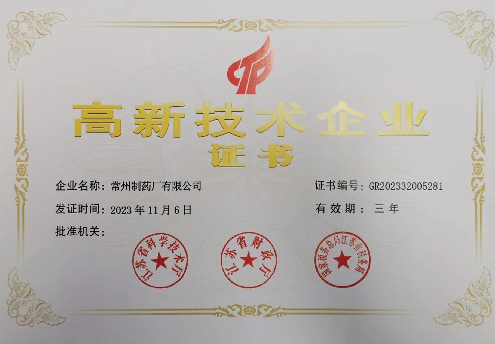 高新技术企业证书